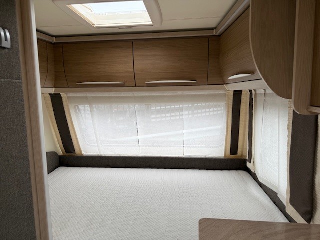 Aan de voorzijde vind je het tweepersoons dwarsbed, voorzien van een lattenbodem en een comfortabel matras, een fijne plek om tot rust te komen.Ook onder dit bed is veel bergruimte deze ruimte is ook te bereiken via het grote serviceluik.