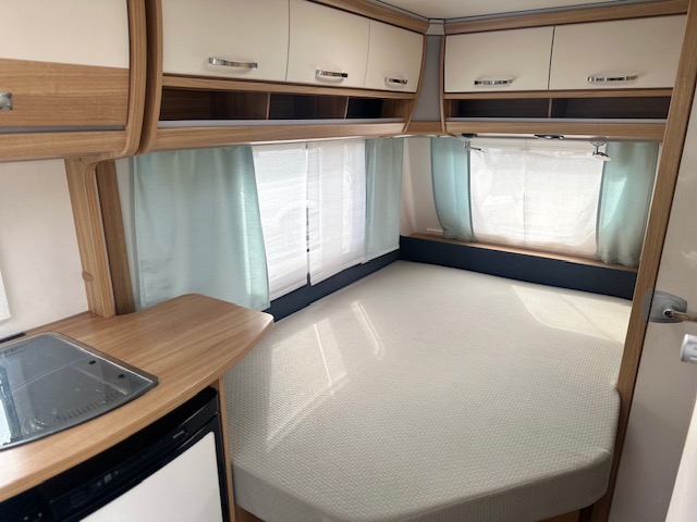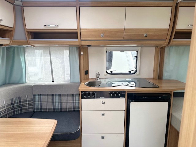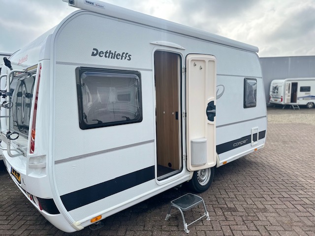 In deze mooie Dethleffs 450 FL Camper van het modeljaar 2015, vindt u de comfortabele zit achter in de caravan. Geschikt voor gezellige lange avonden en familiediners. Van deze zit maakt u eenvoudig een comfortabel extra bed. De zitbanken geven u enorm veel bergruimte. Ook aan de bovenzijde heel veel kastruimte om al uw spullen geordend op te bergen. Centraal vindt u de goed ingerichte keuken met een spoelbak, mengkraan, 3 pits gascomfort en een ruime koelkast. Door de handige opberglades zijn uw spullen altijd binnen handbereik. Ook aan de bovenzijde van de keuken weer royale kastruimte. vindt u de toiletruimte met interne wasgelegendheid. Voorin de caravan staan het franse bed dat ruimte biedt aan twee personen. De lattebodems in combinatie met de matrassen dragen bij aan een heerlijke nachtrust. Kijk eens naar de heerlijke kastruimte boven de bedden. De bergruimte onder de bedden is fantastisch. Uw bagage kunt u ook van de buitenzijde snel bereiken via het serviceluik. De ringverwarming zorgt voor een goede circulatie van de verwarmde lucht. De stabilisatorkoppeling zorgt voor een merkbare verbetering van het weggedrag van deze caravan. Het dakluik in de caravan zorgt voor een goede ventilatie en tevens voor voldoende daglicht in de caravan. Het luchtcirculatiesysteem zorgt voor een goede verdeling van de verwarmde lucht. De caravan is voorzien van een 2 fietsenrekken heerlijk om de fietsen mee te nemen voor lange fietstochten of gemak op de camping. De caravan is uitgerust met een thule cassette luifel, hiermee bent u in een handomdraai klaar om te relaxen. Tot slot is de caravan uitgerust met een mover, hiermee zet u deze eenvoudig op de gewenste plek.