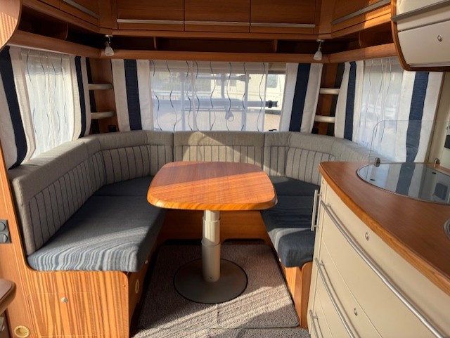 De gezellige rondzit is in dit model achterin geplaatst, deze royale zit staat garant voor fantastisch zitcomfort tijdens gezellige avonden of maaltijden. De eenzuils heftafel zorgt voor veel beenruimte. Tevens is deze zit eenvoudig om te bouwen tot een comfortabele extra slaapplaats. In de kasten boven de zit kunt u veel spullen kwijt. Ook onder de banken is veel bergruimte.