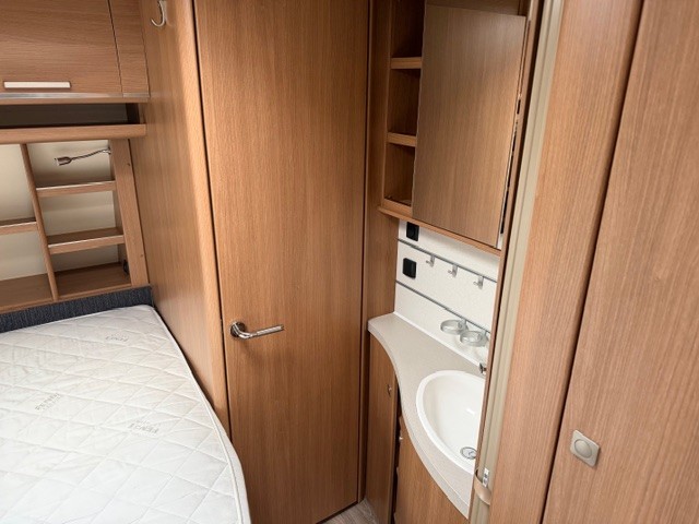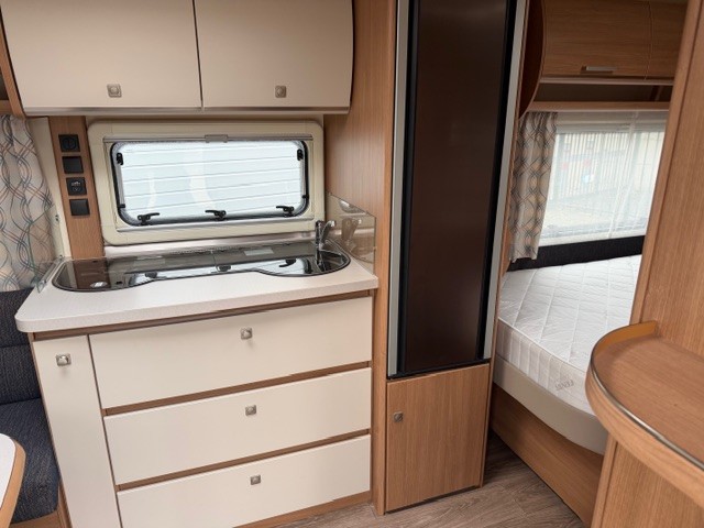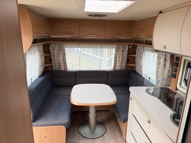 In deze prachtige Fendt 465 SFB Saphir van het modeljaar 2022 is de gezellige rondzit achterin geplaatst, deze royale rondzit staat garant voor fantastisch zitcomfort tijdens gezellige avonden of maaltijden. Dit comfort komt tot stand door de ergonomisch gevormde rugkussens in combinatie met de zitkussens die een hoog soortelijk gewicht hebben. De eenzuils heftafel is zorgt voor veel beenruimte en is traploos verstelbaar. Tevens is deze zit eenvoudig om te bouwen tot een comfortabele extra slaapplaats. Centraal in de caravan is de prachtige keuken geplaatst, voorzien van een spoelbak, kookplaat, mengkraan en royale hoge koelkast, deze is tegenover de keuken gepaatst. De koelkast is zowel links als rechts te openen waardoor u ook vanaf buiten makkelijk bij uw gekoelde etenswaren kunt. De warmwater voorziening is ook aanwezig. Door de praktische lades en de apothekerskast zijn uw spullen altijd eenvoudig bereikbaar. Deze lades zijn voorzien van een softclose en transportsluiting. Aan de voorzijde in de caravan is het franse bed geplaatst dat ruimte biedt aan twee personen. Uw kunt uw nachten comfortabel doorbrengen, de lattenbodems zijn per persoon in hardheid verstelbaar, en de matrassen liggen heerlijk. Tevens vindt u voorin de toiletruimte met externe wasgelegenheid. In beide ruimtes is optimaal gebruik gemaakt van het creereren van bergruimte.U zult in deze caravan, dankzij de ingebouwde hordeur, minder last van insecten hebben. De stabilisatorkoppeling zorgt voor een merkbare verbetering van het weggedrag van deze caravan. Het dakluik in de caravan zorgt voor een goede ventilatie en tevens voor voldoende daglicht in de caravan. Het luchtcirculatiesysteem zorgt voor een goede verdeling van de verwarmde lucht. De caravan is uitgerust met een fietsenrek zodat u de fietsen eenvoudig mee kunt nemen op vakantie. Tot slot is de caravan uitgerust met een mover, hiermee zet u de caravan eenvoudig op de gewenste plek.
