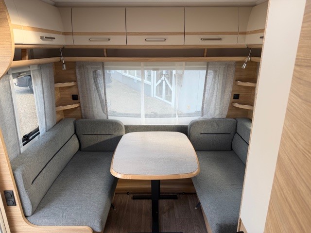 Deze prachtige Fendt 465 TG Bianco Selection is van het modeljaar 2024, voor het eerst in gebruik genomen in 2025. De ruime, gezellige en comfortabele zit aan de achterzijde van de caravan is ideaal om aan te eten en te drinken. Het zitcomfort is hoog, de kussens hebben een hoog soortelijk gewicht en de rugkussens ergonomisch gevormd. Uiteraard kan deze zit ook als extra slaapplaats dienen. In een handomdraai tovert u deze om. De royale hoeveelheid kasten boven de zit zorgen ervoor dat u uw spulllen geordend kunt opbergen. Ook onder de zitbanken is een zee van opbergruimte.