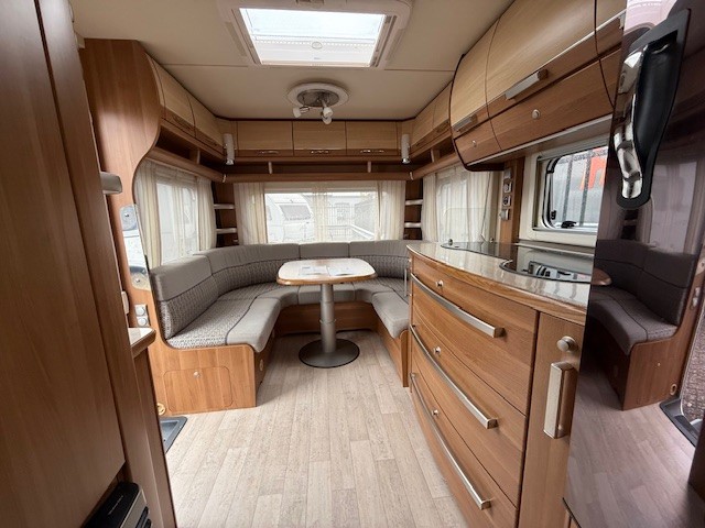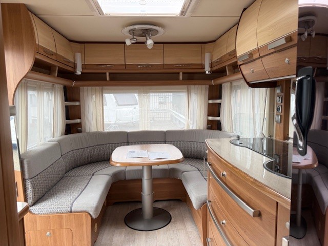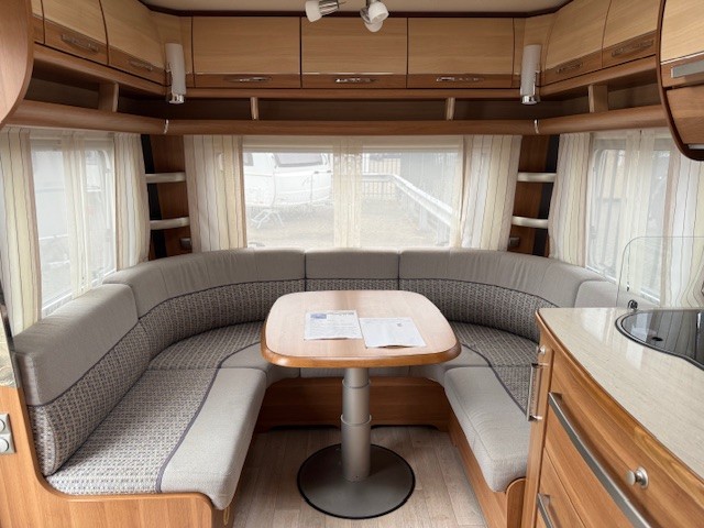 Achterin bevindt zich de gezellige en ruime rondzit, die garant staat voor optimaal zitcomfort tijdens lange avonden of gezamenlijke maaltijden. Dankzij de eenzuilsheftafel geniet je van extra beenruimte en bewegingsvrijheid. De zit is eenvoudig om te bouwen tot een comfortabele extra slaapplaats. Boven en onder de zit is volop kastruimte aanwezig, zodat al je spullen netjes zijn opgeborgen.