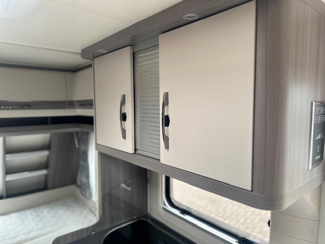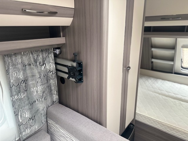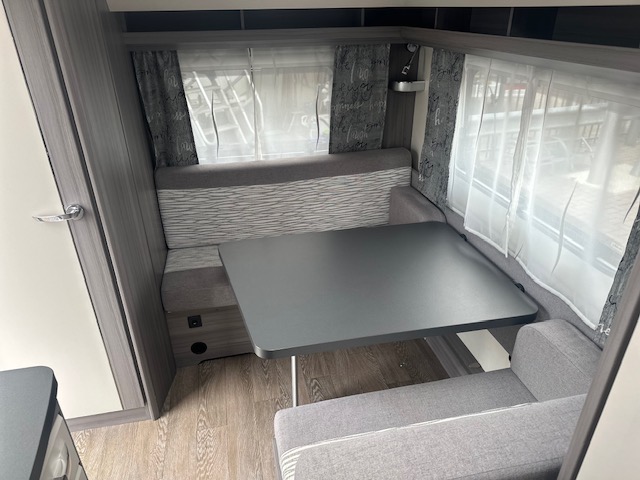 Een prima gelegenheid om gezellig te eten, drinken, lezen en gezellige te borrelen wordt gevormd door de treinzit aan de achterzijde van de caravan. Uiteraad ook eenvoudig om te bouwen tot een extra slaapplek. De bergruimte onder de banken is ideaal, kijk ook eens naar de hoeveelheid kasten boven de zit. De compacte maar complete keuken is centraal in de caravan geplaatst en is onder andere uitgerust met een 3-pits gascomfoor, spoelbak en mengkraan. De warmwatervoorziening loopt via de ingebouwde boiler. De ingebouwde koelkast met vriesvak is uitgevoerd in een ruime uitvoering. Ook aan de bovenzijde van de keuken is kastruimte te vinden. De lades aan de onderzijde zorgen ervoor dat uw spullen altijd makkelijk bereikbaar zijn. De caravan beschikt over een comfortabel, tweepersoons bed dat dwars is geplaatst. De lattebodems in combinatie met het matras zorgen ervoor dat u heerlijk van uw nachtrust kunt genieten. Ook hier is aan bovenkastjes geen gebrek. De toiletruimte met interne, opklapbare wasgelegenheid is aan de achterzijde naast de zit geplaatst. Uw bagage onder het bed kunt u ook van de buitenzijde snel bereiken via het serviceluik. De ringverwarming zorgt voor een goede circulatie van de verwarmde lucht. U zult in deze caravan, dankzij de ingebouwde hordeur, minder last van insecten hebben. De stabilisatorkoppeling zorgt voor een merkbare verbetering van het weggedrag van deze caravan. Het dakluik in de caravan zorgt voor een goede ventilatie en tevens voor voldoende daglicht in de caravan. Het luchtcirculatiesysteem zorgt voor een goede verdeling van de verwarmde lucht. Daarnaast is de carvan uitgerust met een mover, hiermee zet u de caravan eenvoudig op de gewenste plek. ook heeft deze caravan een enduro bc 260 fietsenrek, waardoor de fietsen lekker mee kunnen op vakantie. Tot slot is de caravan voorzien van een Dorema voortent, hiermee vergroot u de leefruimte enorm.