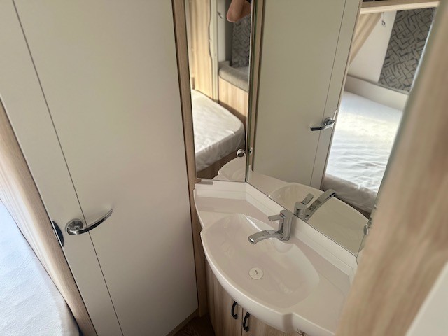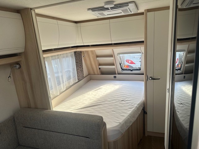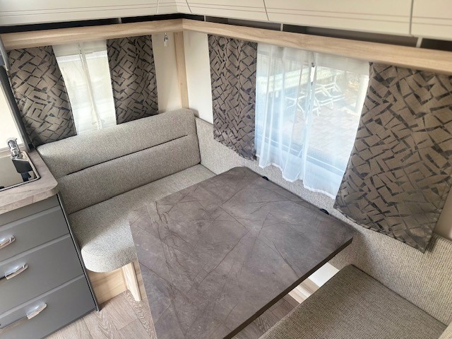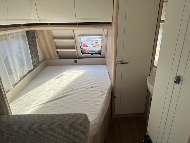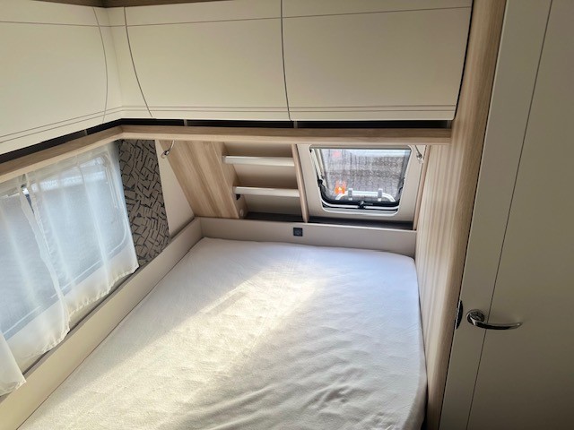 Een prima gelegenheid om gezellig te eten, drinken, lezen en borrelen wordt gevormd door de treinzit aan de achterzijde van de caravan. Uiteraard ook eenvoudig om te bouwen tot een extra slaapplek. De bergruimte onder de banken is ideaal, maar kijk ook eens naar de hoeveelheid kasten boven de zit. De compacte maar complete keuken is naast de zit in de caravan geplaatst en is onder andere uitgerust met een 3-pits gaskomfoor, spoelbak en mengkraan. De warmwatervoorziening loopt via de ingebouwde boiler. De ingebouwde koelkast met vriesvak is uitgevoerd in een ruime uitvoering. Ook aan de bovenzijde van de keuken is kastruimte te vinden. De lades aan de onderzijde zorgen ervoor dat uw spullen altijd makkelijk bereikbaar zijn. De caravan beschikt over een comfortabel, tweepersoons bed dat in de lengte is De lattenbodem in combinatie met het matras zorgen ervoor dat u heerlijk van uw nachtrust kunt genieten. Ook hier is aan bovenkastjes geen gebrek. De toiletruimte met externe wasgelegenheid is aan de voorzijde geplaatst. Uw bagage kunt u ook van de buitenzijde snel bereiken via het serviceluik. De ringverwarming zorgt voor een goede circulatie van de verwarmde lucht. De stabilisatorkoppeling zorgt voor een merkbare verbetering van het weggedrag van deze caravan. Het dakluik in de caravan zorgt voor een goede ventilatie en tevens voor voldoende daglicht in de caravan. Het luchtcirculatiesysteem zorgt voor een goede verdeling van de verwarmde lucht. De caravan is voorzien van een verzwaarde as en mag hierdoor beladen worden tot 1500 KG ipv 1350 KG. Indien gewenst is het totale gewicht ook te verlagen. Verder is de caravan uitgerust met een reservewielbeugel met reservewiel. Ook is er een mover aanwezig een enduro 515 fl volautomatische mover. Daarnaast is er ook een airco van Dometic, hiermee slaapt u ook in de warmste zomernacht lekker koel. ook is er een thule cassette luifel, hiermee bent u in een handomdraai klaar om te relaxen. tot slot is er een enduro schuifbaar fietsenrek aanwezig, zodat u op vakantie uw fiets ook mee kunt nemen.