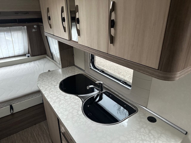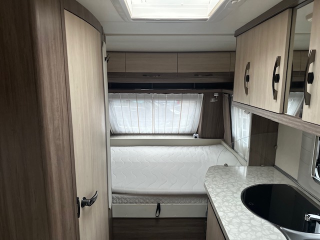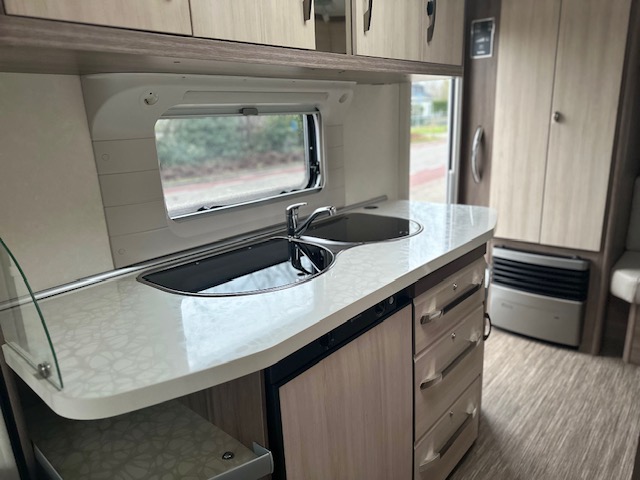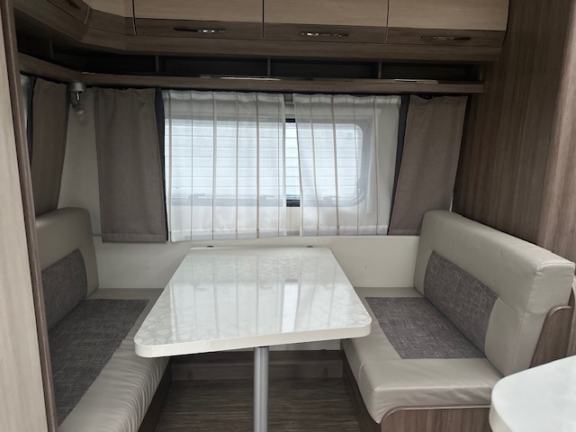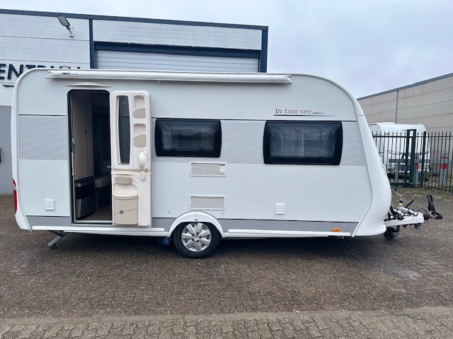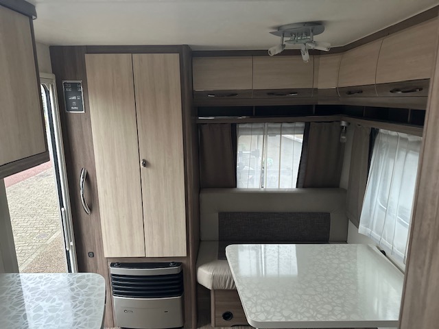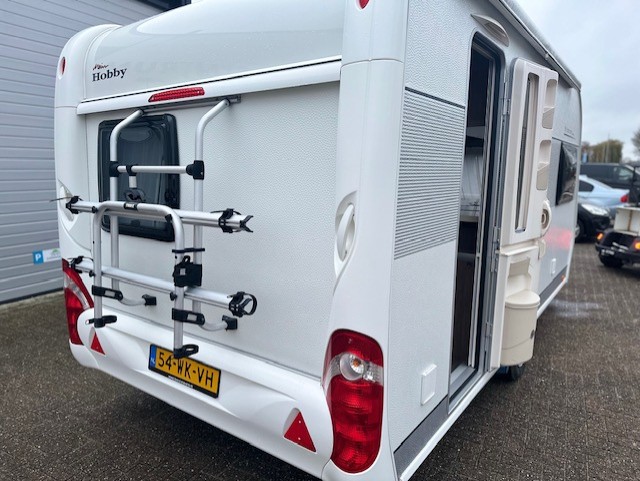 Een geliefd model van Hobby de 440, vooral door zijn royale keuken. In deze hobby 440 SF de Luxe Easy van het modeljaar 2014 vindt u de comfortabele en gezellige treinzit aan de achterzijde. Goed voor gezellige avonden met elkaar of lekker een rustig avondje met een boek. Het is allemaal mogelijk. De rijk uitgeruste royale keuken vindt u centraal in de caravan en is voorzien van een spoelbak 3 pits gascomfort en een mengkraan. De warmwatervoorziening loopt via de ingebouwde boiler. Het grote en lange aanrecht is wat dit model zo populair maakt. Uw spullen zijn makkelijk bereikbaar dankzij de fantastische lades. Ook twee ruime apothekerskasten zullen ervoor zorgen dat uw spullen overzichtelijk zijn opgeborgen. De koelkast is een royale uitvoering. Door de royale lengte van het aanrechtblad heeft u ook boven het aanrecht veel opbergruimte in de vele kastjes. Voorin de caravan staat het dwarsbed dat ruimte biedt aan twee personen. De lattebodems in combinatie met de matrassen dragen bij aan een heerlijke nachtrust. Het bed in de hobby 440 is zeer geschikt voor langere mensen, de matraslengte bedraagt maar liefst 207 cm.Ook centraal vindt u de toiletruimte met interne wasgelegendheid. Het zal u verbazen hoeveel bergruimte er hier is. Uw bagage kunt u ook van de buitenzijde snel bereiken via het serviceluik. De ringverwarming zorgt voor een goede circulatie van de verwarmde lucht. De stabilisatorkoppeling zorgt voor een merkbare verbetering van het weggedrag van deze caravan. Het dakluik in de caravan zorgt voor een goede ventilatie en tevens voor voldoende daglicht in de caravan. Het luchtcirculatiesysteem zorgt voor een goede verdeling van de verwarmde lucht. De caravan is voorzien van een mover, hiermee zet u de caravan moeiteloos op de gewenste plaats. Tevens is de caravan voorzien van twee fietsenrekken, handig voor op de camping of heerlijke lange fietstochten. Tot slot is de caravan voorzien van een zakluifel, hiermee bent u in een handomdraai klaar om te relaxen.