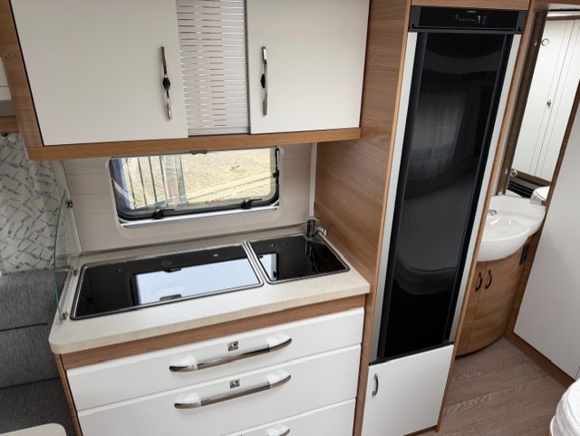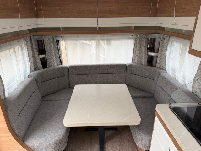 In deze Hobby 460 UFe de Luxe van het modeljaar 2023 vinden we de riante comfortabele rondzit aan de achterzijde van de caravan, ideaal om gezellig aan te eten en te drinken met het hele gezin, of een heerlijke borrelavond. De kastruimte boven de zit is heel erg ruim, al uw spullen kunnen overzichtelijk opgeborgen worden. En ook onder de zit is veel bergruimte. Uiteraard is de zit ook binnen een handomdraai als extra slaapplaats te gebruiken. Centraal in de caravan bevindt zich de praktisch ingedeelde en ruime middenkeuken, welke geheel compleet is uitgerust met een spoelbak, mengkraan en 3-pits kooktoestel. Een ingebouwde boiler voorziet u van warm water. De fantastiche hoge koelkast met vriescompartiment is ruim genoeg voor al uw etenswaren. De handige lades zorgen ervoor dat u altijd makkelijk bij uw spullen kunt. Ook aan de bovenzijde van de keuken weer veel bovenruimte met kasten. De caravan is aan de voorzijde uitgerust met een Frans bed, een in de lengte geplaatst tweepersoons bed. De lattebodems in combinatie met de koudschuimmatrassen dragen bij aan een heerlijke nachtrust. Ook boven het bed weer veel bovenkastruimte. En veel bergruimte ook onder het bed. De toiletruimte met externe wasgelegenheid bevindt zich ook aan de voorzijde van de caravan. Uw bagage kunt u ook van de buitenzijde snel bereiken via het serviceluik.De ringverwarming zorgt voor een goede circulatie van de verwarmde lucht.U zult in deze caravan, dankzij de ingebouwdehordeur, minder last van insecten hebben.De stabilisatorkoppeling zorgt voor een merkbare verbetering van het weggedrag van deze caravan.Het dakluik in de caravan zorgt voor een goede ventilatie en tevens voor voldoende daglicht in de caravan.Dankzij het grote serviceluik zijn uw spullen ook van buitenaf goed bereikbaar. Het luchtcirculatiesysteem zorgt voor een goede verdeling van de verwarmde lucht.