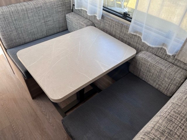 Het hele gezin in de caravan? Geen probleem voor deze mooie en complete Hobby 470 KMF On tour van het modeljaar 2023 Voorin de caravan vindt U het over dwars geplaatste comfortabele bed dat ruimte biedt aan twee personen. Om u van een welverdiende nachtrust te laten genieten, hebben de bedden niet alleen lattenbodems maar ook heerlijke matrassen. Boven het bed zijn veel ruime kasten. De bergruimte onder het bed is ook van buitenaf bereikbaar. Centraal in de caravan vindt U de gezellige zit, hierin kunt u met uw gezin geniet van heerlijke maaltijden en gezellige avonden. Tevens kunt u van deze zit ook eenvoudig een extra slaapplaats maken. Ook boven de zit is een royaal aantal kastjes aanwezig. En uiteraard ook onder de zit veel bergruimte.