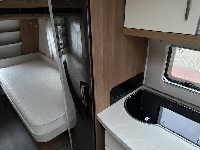 Bomvol met opties deze populaire Hobby 495 UL de Luxe van het modeljaar 2019, voor het eerst in gebruik genomen in 2020. Hier vindt u de comfortabele rondzit achter in de caravan. Geschikt voor gezellige lange avonden en familiediners. Van deze rondzit maakt u eenvoudig een comfortabel extra bed. De zitbanken geven u enorm veel bergruimte. Ook aan de bovenzijde heel veel kastruimte om al uw spullen geordend op te bergen. Centraal vindt u de goed ingerichte keuken met een spoelbak, mengkraan, 3 pits gascomfort en een hoge royale koelkast. Door de handige opberglades zijn uw spullen altijd binnen handbereik. Ook aan de bovenzijde van de keuken weer royale kastruimte. Tegenover de keuken vindt u de toiletruimte met interne wasgelegendheid. Hobby heeft hier waar mogelijk bergruimte gemaakt. Voorin de caravan staan de twee eenpersoonsbedden. De lattebodems in combinatie met de matrassen dragen bij aan een heerlijke nachtrust. Kijk eens naar de heerlijke kastruimte boven de bedden. De bergruimte onder de bedden is fantastisch. Uw bagage kunt u ook van de buitenzijde snel bereiken via het serviceluik. De ringverwarming zorgt voor een goede circulatie van de verwarmde lucht. De stabilisatorkoppeling zorgt voor een merkbare verbetering van het weggedrag van deze caravan. Het dakluik in de caravan zorgt voor een goede ventilatie en tevens voor voldoende daglicht in de caravan. Het luchtcirculatiesysteem zorgt voor een goede verdeling van de verwarmde lucht. De caravan is voorzien van een fietsenrek, voor gemak op de camping of heerlijke lange fietstochten. De caravan is uitgerust met een cassetteluifel, hiermee bent u binnen een handomdraai klaar om te relaxen. De caravan uitgerust met een mover, hiermee zet u deze eenvoudig op de gewenste plek. En tot slot is de caravan uitgerust met een airco, hiermee slaapt u in de warmste zomernacht lekker koel.