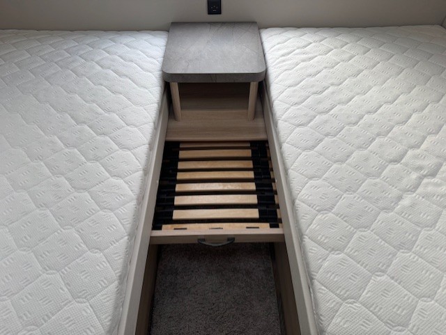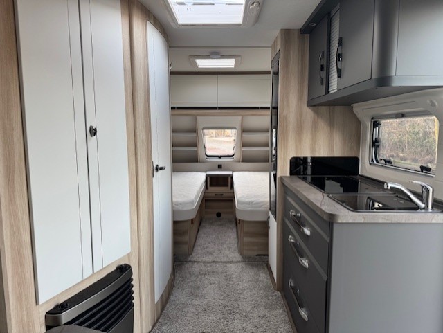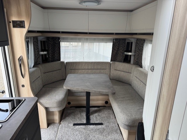 Bomvol met opties deze populaire Hobby 495 UL de Luxe van het modeljaar 2024. Hier vindt u de comfortabele rondzit achter in de caravan. Geschikt voor gezellige lange avonden en familiediners. Van deze rondzit maakt u eenvoudig een comfortabel extra bed. De zitbanken geven u enorm veel bergruimte. Ook aan de bovenzijde heel veel kastruimte om al uw spullen geordend op te bergen. Centraal vindt u de goed ingerichte keuken met een spoelbak, mengkraan, 3 pits gascomfort en een hoge royale koelkast. Door de handige opberglades zijn uw spullen altijd binnen handbereik. Ook aan de bovenzijde van de keuken weer royale kastruimte. Tegenover de keuken vindt u de toiletruimte met interne wasgelegendheid. Hobby heeft hier waar mogelijk bergruimte gemaakt. Voorin de caravan staan de twee eenpersoonsbedden. De lattebodems in combinatie met de matrassen dragen bij aan een heerlijke nachtrust. Kijk eens naar de heerlijke kastruimte boven de bedden. De bergruimte onder de bedden is fantastisch. Uw bagage kunt u ook van de buitenzijde snel bereiken via het serviceluik. De ringverwarming zorgt voor een goede circulatie van de verwarmde lucht. De stabilisatorkoppeling zorgt voor een merkbare verbetering van het weggedrag van deze caravan. Het dakluik in de caravan zorgt voor een goede ventilatie en tevens voor voldoende daglicht in de caravan. Het luchtcirculatiesysteem zorgt voor een goede verdeling van de verwarmde lucht. De caravan is voorzien van een fietsenrek, voor gemak op de camping of heerlijke lange fietstochten. De caravan uitgerust met een mover, hiermee zet u deze eenvoudig op de gewenste plek. de Knott ETC zorgt ervoor dat de caravan minimaal slingert achter de auto.