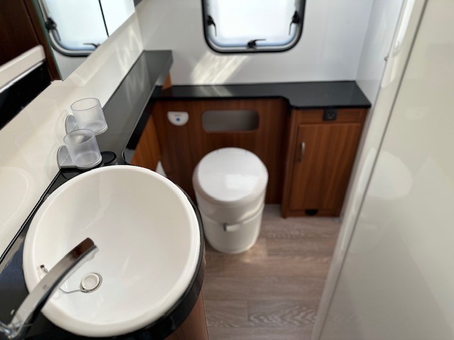 Wat een geweldige caravan is de Hobby 495 WFB Excellent. Deze caravan is van het modeljaar 2018 en voor het eerst in gebruik genomen in 2019. Met deze caravan bent u niet meer afhankelijk van de sanitaire voorzieningen op de camping, u heeft uw eigen badkamer gewoon bij zich.