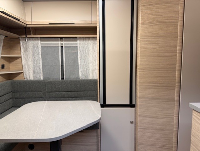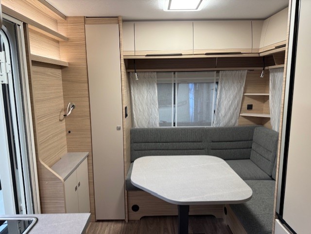 In deze Fendt 465 SGE Bianco Activ van het modeljaar 2026 is de gezellige hoekzit aan de achterzijde geplaatst, deze zit staat garant voor fantastisch zitcomfort tijdens gezellige avonden of maaltijden. Dit comfort komt tot stand door de ergonomisch gevormde rugkussens in combinatie met de zitkussens die een hoog soortelijk gewicht hebben. In de kasten boven de zit kunt u veel spullen kwijt. Ook onder de banken is bergruimte. Als extra zitplek is de poef te gebruiken.