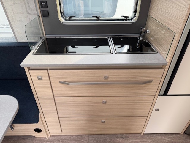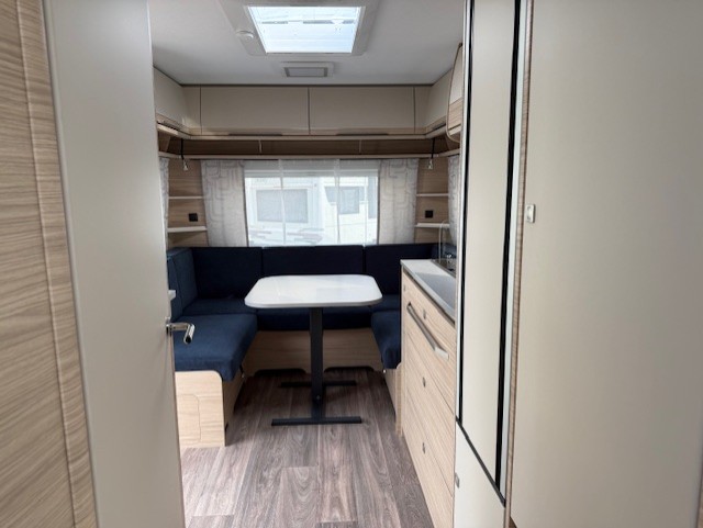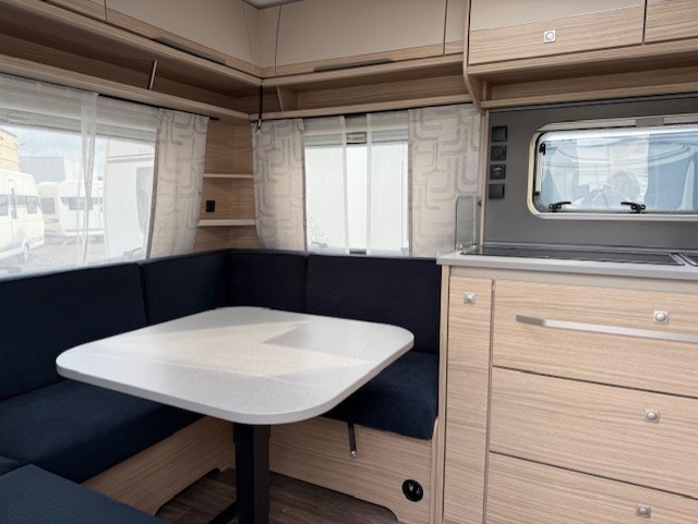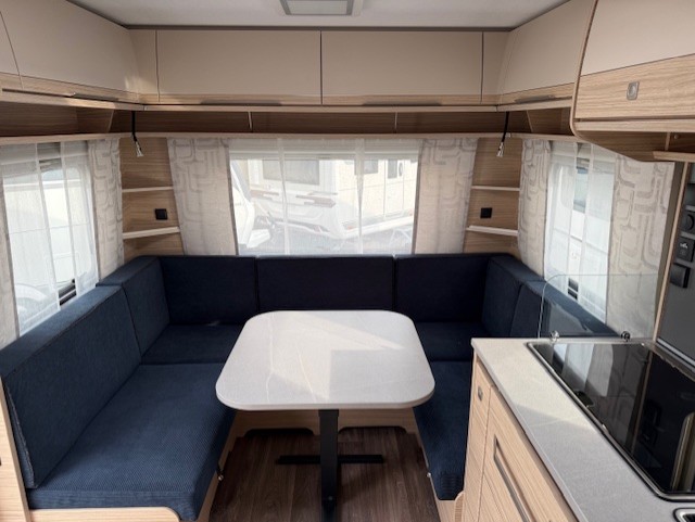 In deze Fendt 515 SG Bianco Selection van het modeljaar 2026 is de gezellige rondzit achterin geplaatst, deze royale rondzit staat garant voor fantastisch zitcomfort tijdens gezellige avonden of maaltijden. Dit comfort komt tot stand door de ergonomisch gevormde rugkussens in combinatie met de zitkussens die een hoog soortelijk gewicht hebben. De eenzuils heftafel is zorgt voor veel beenruimte en is traploos verstelbaar. De rechte hoeken in deze rondzit maken dat u heerlijk ontspannen in de hoek kunt zitten. Tevens is deze zit eenvoudig om te bouwen tot een comfortabele extra slaapplaats. In de kasten boven de zit kunt u veel spullen kwijt. Ook onder de banken is veel bergruimte.