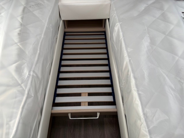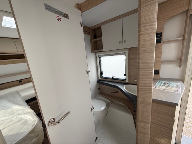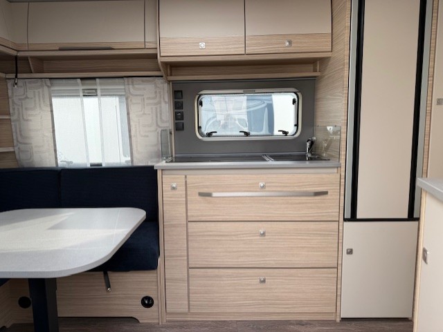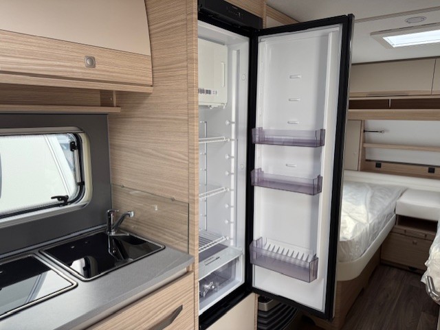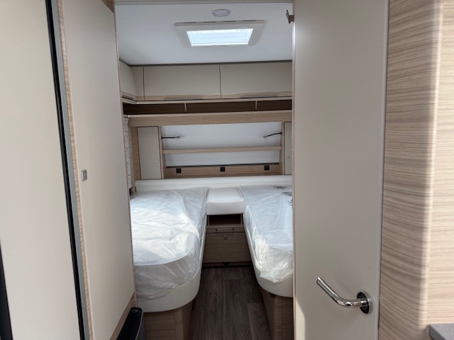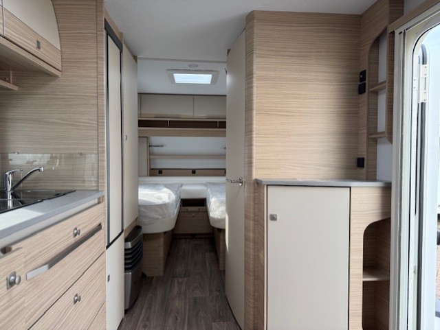 Centraal in de caravan is de goed uitgeruste keuken geplaatst, voorzien van een spoelbak , kookplaat, mengkraan en een royale hoge koelkast. De koelkast is zowel links als rechts te openen waardoor iedereen makkelijk bij de gekoelde etenswaren kan zonder elkaar in de weg te lopen. De warmwater voorziening loopt via de ingebouwde boiler. Door de praktische lades en de apothekerskast zijn uw spullen altijd eenvoudig bereikbaar.Deze lades zijn voorzien van een softclose en transportsluiting. Ook aan de bovenzijde in de keuken vindt u veel opbergruimte. De caravan is aan de voorzijde uitgerust met twee enkele bedden. Om u van een welverdiende nachtrust te laten genieten, hebben de bedden lattebodems met volledig flexibele veerbruggen met hardheidinstelling en zeven zone comfortschuim matrassen. Door de enkele bedden is de ruime hoeveelheid kasten, tel maar, boven de bedden makkelijk bereikbaar. Ook onder beide bedden is er bergruimte. De bergruimte onder het bed aan de voorzijde is ook bereikbaar via het grote serviceluik. Tevens is deze caravan voorzien van een bedverbreding, door middel van een uittrekbare lattebodem tovert u eenvoudig de twee enkele bedden om tot een kingsizebed. De toiletruimte met interne wasgelegenheid bevindt zich centraal in de caravan. Ook hier heeft Fendt waar mogelijk opbergruimte gecreeërd. Aan de overzijde van de toiletruimte vindt u de kledingkast. De caravan beschikt over talrijke lichtelementen die zorgen voor een unieke atmosfeer. De caravan is voorzien van een stabilisator koppeling, deze zorgt voor een stabiele wegligging. Het grote dakluik van de caravan zorgt voor extra veel lichtinval en een goede ventilatie. U zult in deze caravan, dankzij de ingebouwde hordeur, minder last van insecten hebben. Het luchtcirculatiesysteem zorgt daarbij voor een goede verdeling van de verwarmde lucht.Ook in de disselbak is bergruimte, de dissel zelf is afgedekt door een mooie afdekkap.De verzwaarde uitdraaisteunen zorgen voor extra stabiliteit. De lichtmetalen velgen maken dit plaatje compleet.