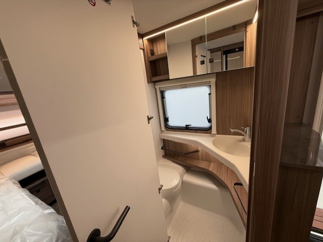 De toiletruimte met interne wasgelegenheid bevindt zich centraal in de caravan. Ook hier heeft Fendt waar mogelijk opbergruimte gecreeërd. Aan de overzijde van de toiletruimte vindt u de kledingkast. De caravan beschikt over talrijke lichtelementen die zorgen voor een unieke atmosfeer. De caravan is voorzien van een stabilisator koppeling, deze zorgt voor een stabiele wegligging.Het grote dakluik van de caravan zorgt voor extra veel lichtinval en een goede ventilatie. U zult in deze caravan, dankzij de ingebouwde hordeur, minder last van insecten hebben. Het luchtcirculatiesysteem zorgt daarbij voor een goede verdeling van de verwarmde lucht. Ook in de disselbak is bergruimte, de dissel zelf is afgedekt door een mooie afdekkap.De verzwaarde uitdraaisteunen zorgen voor extra stabiliteit.