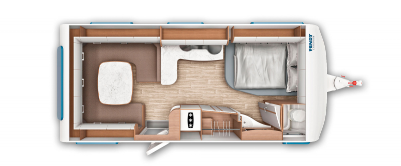 De toiletruimte met externe wasgelegenheid bevindt zich tevens aan de voorzijde in de caravan. Ook hier heeft Fendt waar mogelijk opbergruimte gecreeërd. De caravan beschikt over talrijke lichtelementen die zorgen voor een unieke atmosfeer. De caravan is voorzien van een stabilisator koppeling, deze zorgt voor een stabiele wegligging.Het grote dakluik van de caravan zorgt voor extra veel lichtinval en een goede ventilatie. U zult in deze caravan, dankzij de ingebouwde hordeur, minder last van insecten hebben. Het luchtcirculatiesysteem zorgt daarbij voor een goede verdeling van de verwarmde lucht. Ook in de disselbak is bergruimte, de dissel zelf is afgedekt door een mooie afdekkap. De verzwaarde uitdraaisteunen zorgen voor extra stabiliteit. De lichtmetalen velgen maken dit plaatje compleet .Door de aanwezige asverzwaring is de caravan te beladen tot 2000 KG. Er is een reservewiel aanwezig. Ook is de caravan uitgerust met een Truma combi 6e. (De Truma Combi 6 E verenigt alle voordelen van de Combi 6 met die van een elektrische verwarming. Het verschil met de Truma Combi 6 is dat er extra elektrische verwarmingselementen zijn geïntegreerd. De Combi 6E heeft heel weinig stroom nodig. De verwarming werkt op gas voor vrij kamperen, op stroom op de camping en gecombineerd bij lage buitentemperaturen. In de zomer verhit de Truma Combi 6 E alleen het water, zonder de caravan te verwarmen. De Truma Combi 6 E verbindt de functies verwarming en water verwarmen in één toestel. De verwarming levert binnen enkele minuten weldadige warmte in uw caravan. Tegelijkertijd wordt het water verwarmd dat nodig is voor afwassen of handen wassen. De clou daarbij is: u hoeft slechts één apparaat in uw caravan in te bouwen. Dat bespaart gewicht en ruimte: in tegenstelling tot een S-verwarming blijft de doorgangsruimte in uw voertuig volledig behouden.) De genoemde prijs is incl truma combi 6e, reservewiel en 2000 kg as