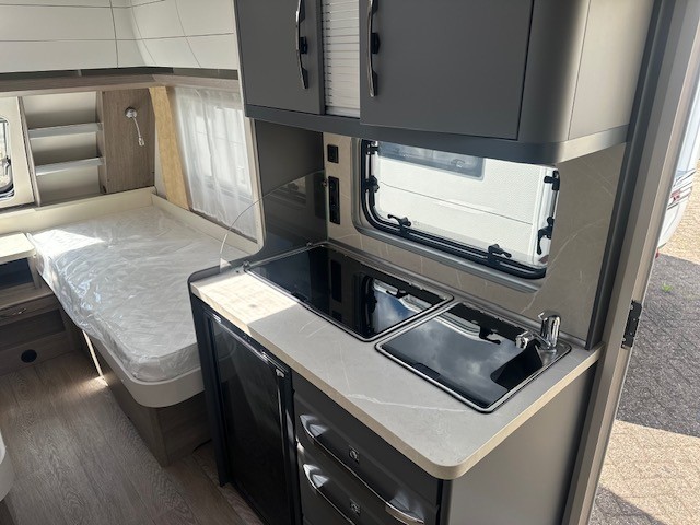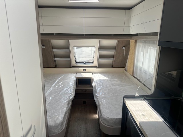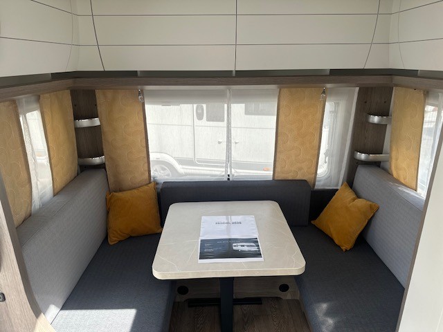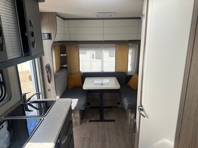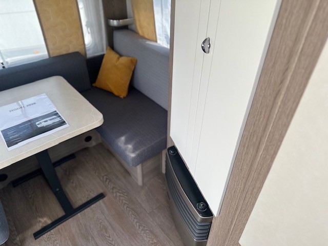 In deze prachtige 460 DL On Tour van het modeljaar 2026 vindt u de comfortabele en gezellige zit aan de achterzijde in de caravan. Geschikt voor gezellige lange avonden en familiediners. Van deze zit maakt u eenvoudig een comfortabel extra bed. Boven deze zit zijn er veel opbergkasten zodat uw uw bezittingen overzichtelijk kunt opbergen. Ook onder de banken is veel bergruimte. Centraal vindt u de goed ingerichte keuken met een spoelbak, mengkraan, 3 pits gascomfort en een royale koelkast met een vriesvak. De warmwatervoorziening loopt via de ingebouwde boiler. Uw spullen zijn makkelijk bereikbaar dankzij de fantastische lades, met softclose en transportsluitingen. Ook aan de bovenzijde van de keuken is veel bergruimte te vinden. Tegenover de keuken vindt u de toiletruimte met interne wasgelegendheid. Het zal u verbazen hoe goed en creatief hobby hier bergruimte heeft gemaakt. Aan de voorzijde van de caravan staan de twee eenpersoonsbedden. De lattebodems in combinatie met de binnenveringsmatrassen dragen bij aan een heerlijke nachtrust. Door de aanwezige bedverbreding maakt u in een handomdraai van deze een persoonsbedden en royaal kingsizebed. Ook hier boven de bedden lekkere royale kastruimte en de bergruimte onder de bedden is fantastisch. Aan de voorzijde (tentzijde) is deze bergruimte ook te bereiken via het grote serviceluik. De ringverwarming zorgt voor een goede circulatie van de verwarmde lucht.U zult in deze caravan, dankzij de ingebouwde hordeur, minder last van insecten hebben. De stabilisatorkoppeling zorgt voor een merkbare verbetering van het weggedrag van deze caravan. Het dakluik in de caravan zorgt voor een goede ventilatie en tevens voor voldoende daglicht in de caravan. Het luchtcirculatiesysteem zorgt voor een goede verdeling van de verwarmde lucht. De verzwaarde uitdraaisteunen geven extra stabiliteit.