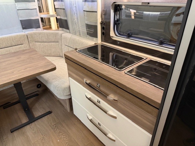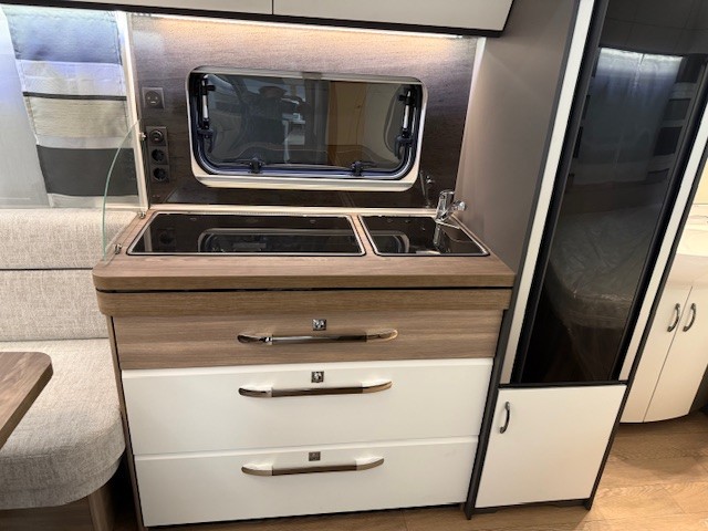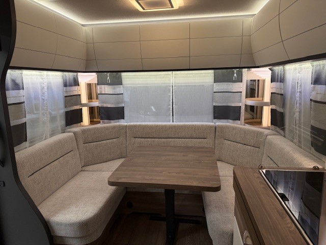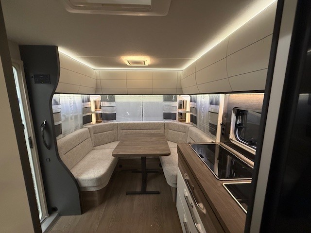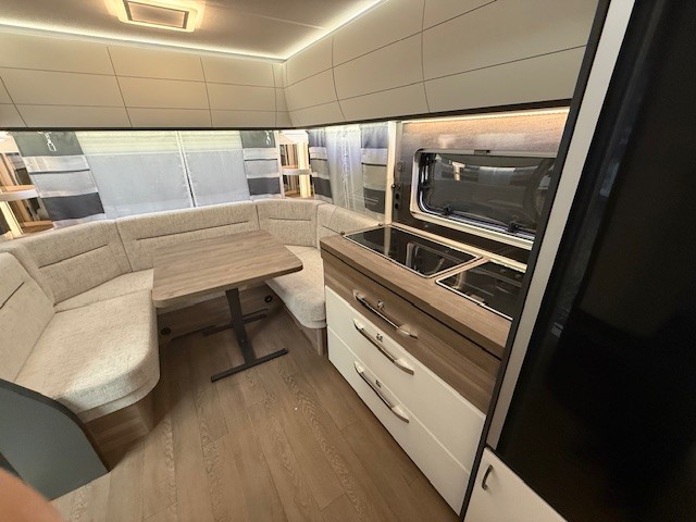 In deze nieuwe Hobby 460 UFe Excellent Edition van het modeljaar 2025 vinden we de riante comfortabele rondzit aan de achterzijde van de caravan, ideaal om gezellig aan te eten en te drinken met het hele gezin, of een heerlijke borrelavond. De kastruimte boven de zit is heel erg ruim, al uw spullen kunnen overzichtelijk opgeborgen worden. En ook onder de zit is veel bergruimte. Uiteraard is de zit ook binnen een handomdraai als extra slaapplaats te gebruiken. Centraal in de caravan bevindt zich de praktisch ingedeelde en ruime middenkeuken, welke geheel compleet is uitgerust met een spoelbak, mengkraan en 3-pits kooktoestel. Een ingebouwde boiler voorziet u van warm water. De fantastiche hoge koelkast met vriescompartiment is ruim genoeg voor al uw etenswaren. De handige lades zorgen ervoor dat u altijd makkelijk bij uw spullen kunt. Ook aan de bovenzijde van de keuken weer veel bovenruimte met kasten. De caravan is aan de voorzijde uitgerust met een Frans bed, een in de lengte geplaatst tweepersoons bed. De lattebodems in combinatie met de fantastische matrassen dragen bij aan een heerlijke nachtrust. Ook boven het bed weer veel bovenkastruimte. En veel bergruimte ook onder het bed. De toiletruimte met externe wasgelegenheid bevindt zich ook aan de voorzijde van de caravan. Uw bagage kunt u ook van de buitenzijde snel bereiken via het serviceluik.De ringverwarming zorgt voor een goede circulatie van de verwarmde lucht.U zult in deze caravan, dankzij de ingebouwdehordeur, minder last van insecten hebben.De stabilisatorkoppeling zorgt voor een merkbare verbetering van het weggedrag van deze caravan.Het dakluik in de caravan zorgt voor een goede ventilatie en tevens voor voldoende daglicht in de caravan.Dankzij het grote serviceluik zijn uw spullen ook van buitenaf goed bereikbaar. Het luchtcirculatiesysteem zorgt voor een goede verdeling van de verwarmde lucht.