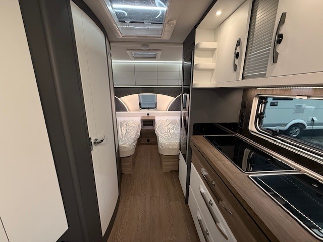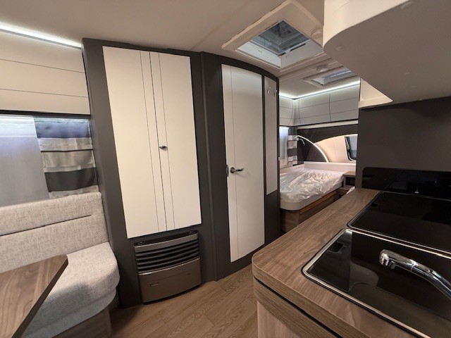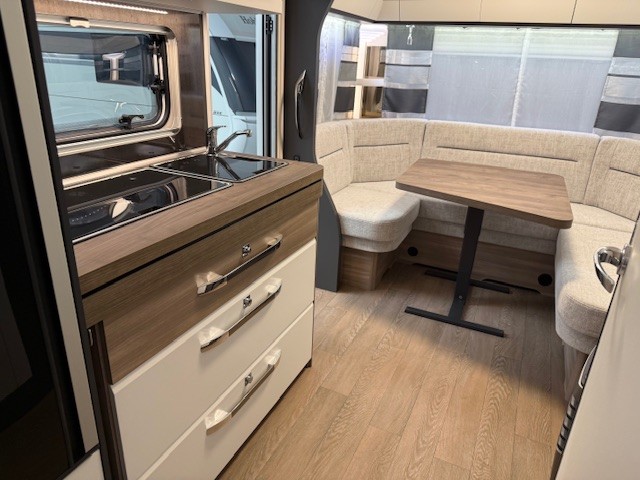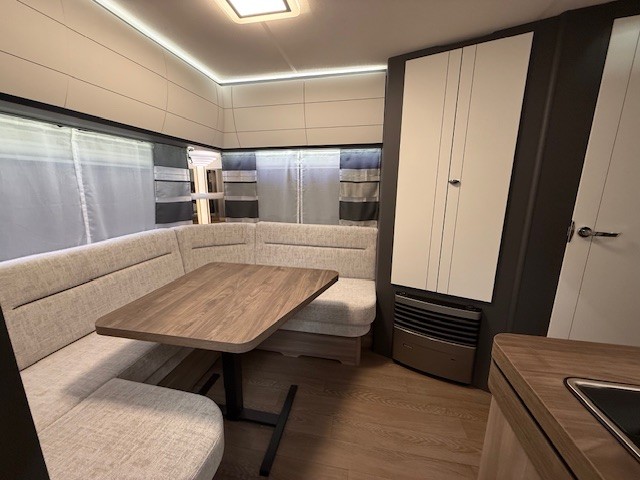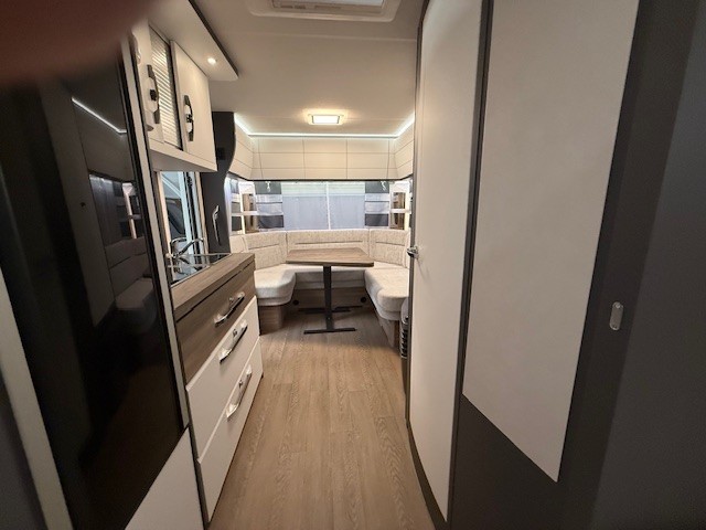 In deze nieuwe Hobby 495 UL Excellent Edition van het modeljaar 2025 vindt u de comfortabele en royale rondzit achter in de caravan. Geschikt voor gezellige lange avonden en familiediners. Van deze rondzit maakt u eenvoudig een comfortabel extra bed. De zitbanken geven u enorm veel bergruimte. Ook aan de bovenzijde heel veel kastruimte om al uw spullen geordend op te bergen. Centraal vindt u de goed ingerichte keuken met een spoelbak, mengkraan, 3 pits gascomfort en een hoge royale koelkast. Door de handige opberglades, met softclose, zijn uw spullen altijd binnen handbereik. Ook aan de bovenzijde van de keuken weer royale kastruimte.Tegenover de keuken vindt u de toiletruimte met interne wasgelegendheid.Hobby heeft hier waar mogelijk bergruimte gemaakt. Voorin de caravan staan de twee eenpersoonsbedden. De lattebodems in combinatie met de koudschuimmatrassen dragen bij aan een heerlijke nachtrust. Kijk eens naar de heerlijke kastruimte boven de bedden. Dank zijn de bedverbreding maakt u in een handomdraai een kingsize bed. De bergruimte onder de bedden is fantastisch. Uw bagage kunt u ook van de buitenzijde snel bereiken via het serviceluik.De ringverwarming zorgt voor een goede circulatie van de verwarmde lucht.U zult in deze caravan, dankzij de ingebouwdehordeur, minder last van insecten hebben.De stabilisatorkoppeling zorgt voor een merkbare verbetering van het weggedrag van deze caravan.Het dakluik in de caravan zorgt voor een goede ventilatie en tevens voor voldoende daglicht in de caravan. Dankzij het grote serviceluik zijn uw spullen ook van buitenaf goed bereikbaar. Het luchtcirculatiesysteem zorgt voor een goede verdeling van de verwarmde lucht. De genoemde prijs is incl Bedverbreding, Reservewiel en Asverhoging tot 1750 KG.