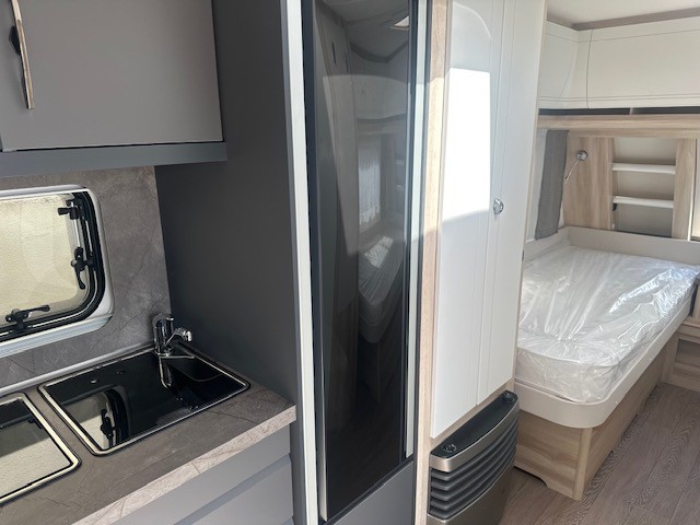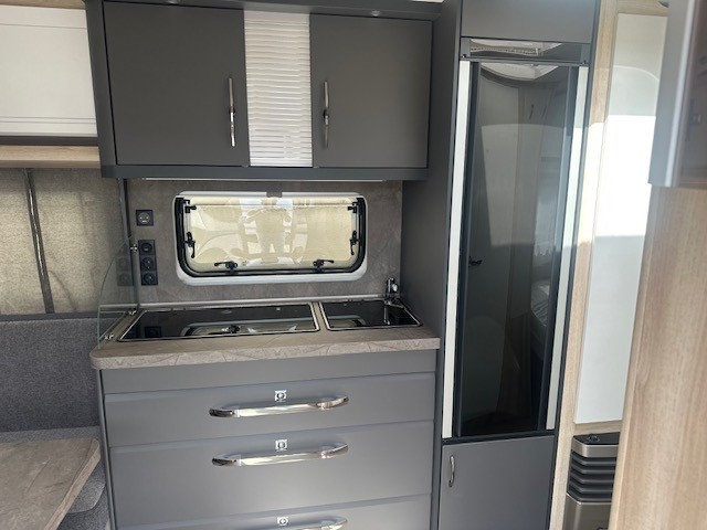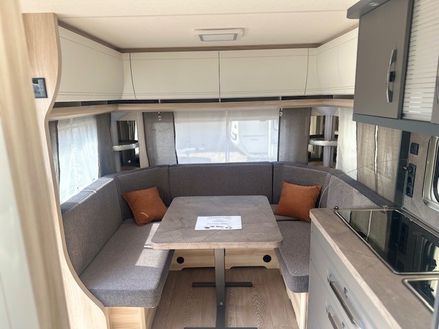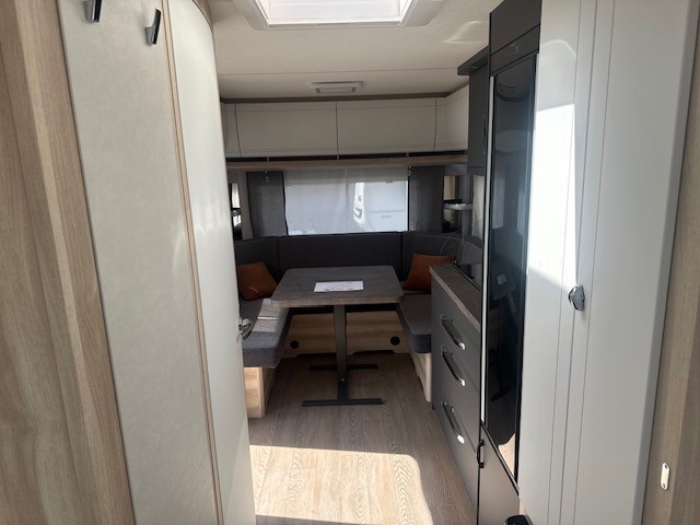 In deze nieuwe Hobby 540 UL de Luxe van het modeljaar 2026 vindt u de comfortabele en ruime rondzit achter in de caravan. Geschikt voor gezellige lange avonden en familiediners. Royale kastruimte boven de zit om uw spullen georganiseerd op te bergen. En ook onder de zitbanken veel bergruimte. Van deze rondzit maakt u eenvoudig een comfortabel extra bed. Centraal vindt u de goed ingerichte keuken met een spoelbak, mengkraan, 3 pits gascomfort en een hoge royale koelkast. De warmwatervoorziening loopt via de ingebouwde boiler. Door de handige opberglades zijn uw spullen altijd binnen handbereik. Aan de bovenzijde van de de keuken ook weer veel kastruimte. Tegenover de keuken vindt u de toiletruimte met interne wasgelegendheid. Voorin de caravan staan de twee eenpersoonsbedden. De lattebodems in combinatie met de matrassen dragen bij aan een heerlijke nachtrust. Van deze enkele bedden maakt u door middel van de bedverbreding in een handomdraai een kingsize bed. De ringverwarming zorgt voor een goede circulatie van de verwarmde lucht. U zult in deze caravan, dankzij de ingebouwde hordeur, minder last van insecten hebben. De stabilisatorkoppeling zorgt voor een merkbare verbetering van het weggedrag van deze caravan. Het dakluik in de caravan zorgt voor een goede ventilatie en tevens voor voldoende daglicht in de caravan. Dankzij het grote serviceluik zijn uw spullen ook van buitenaf goed bereikbaar. Het luchtcirculatiesysteem zorgt voor een goede verdeling van de verwarmde lucht.